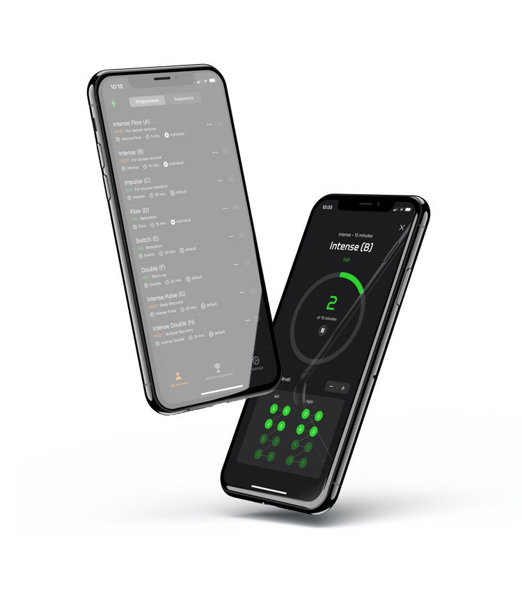Intuitivo y exacto según tus necesidades. Con nuestra Reboots App controlas el programa, la intensidad y el desarrollo de tu sesión de Recovery con solo pulsar un botón. Personaliza tus unidades de masaje, regula la presión en las cámaras de aire seleccionadas y guarda tus configuraciones optimizadas para la próxima aplicación.
