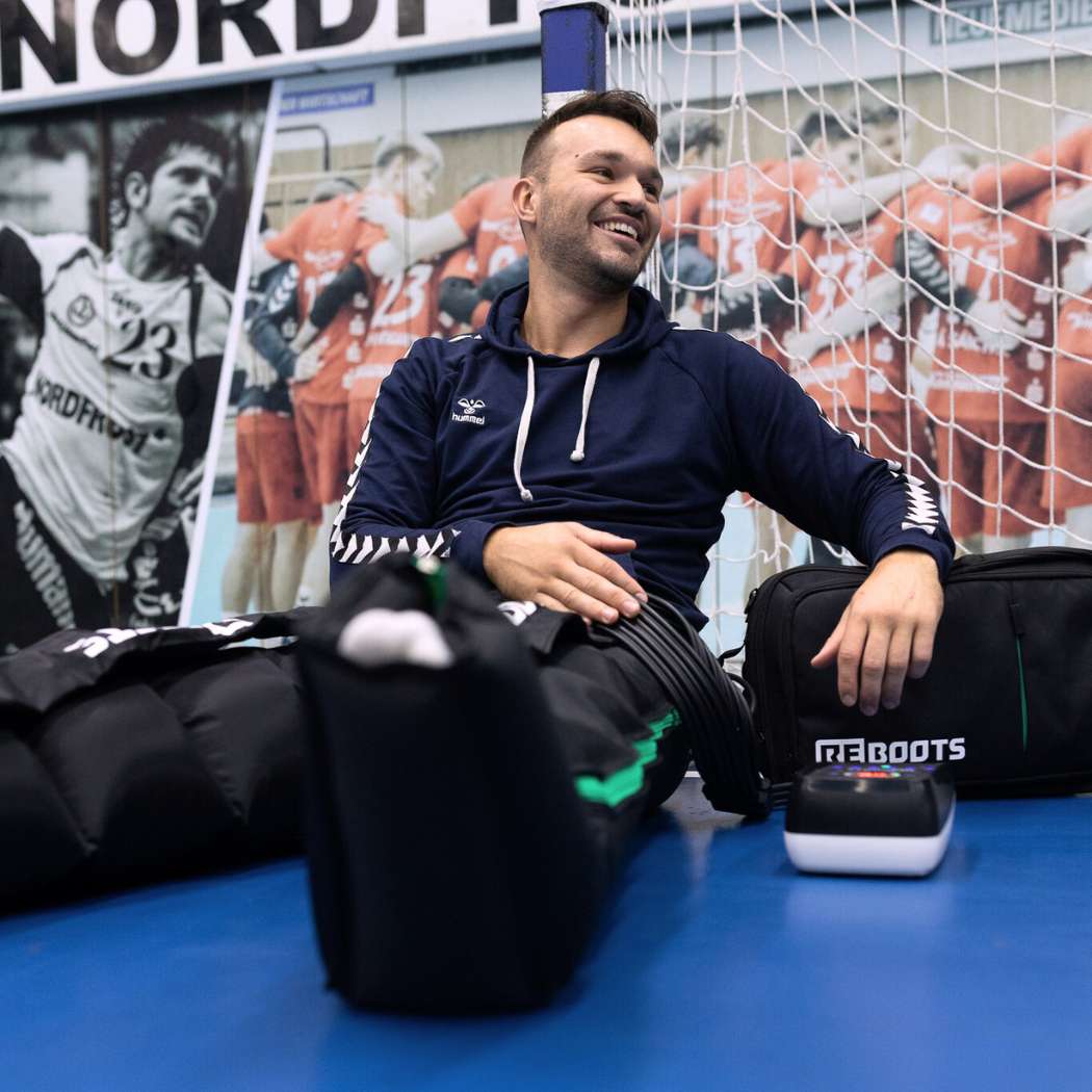 Depuis des années, Tim Düren convainc sur le terrain de handball par sa rapidité, sa précision et son engagement inlassable. Pour pouvoir atteindre sa performance maximale à chaque match, il mise sur une régénération ciblée. Pour cela, il fait confiance à notre Reboots Go X, qui l'aide à récupérer de manière optimale sa musculature et à être toujours prêt pour le prochain défi.